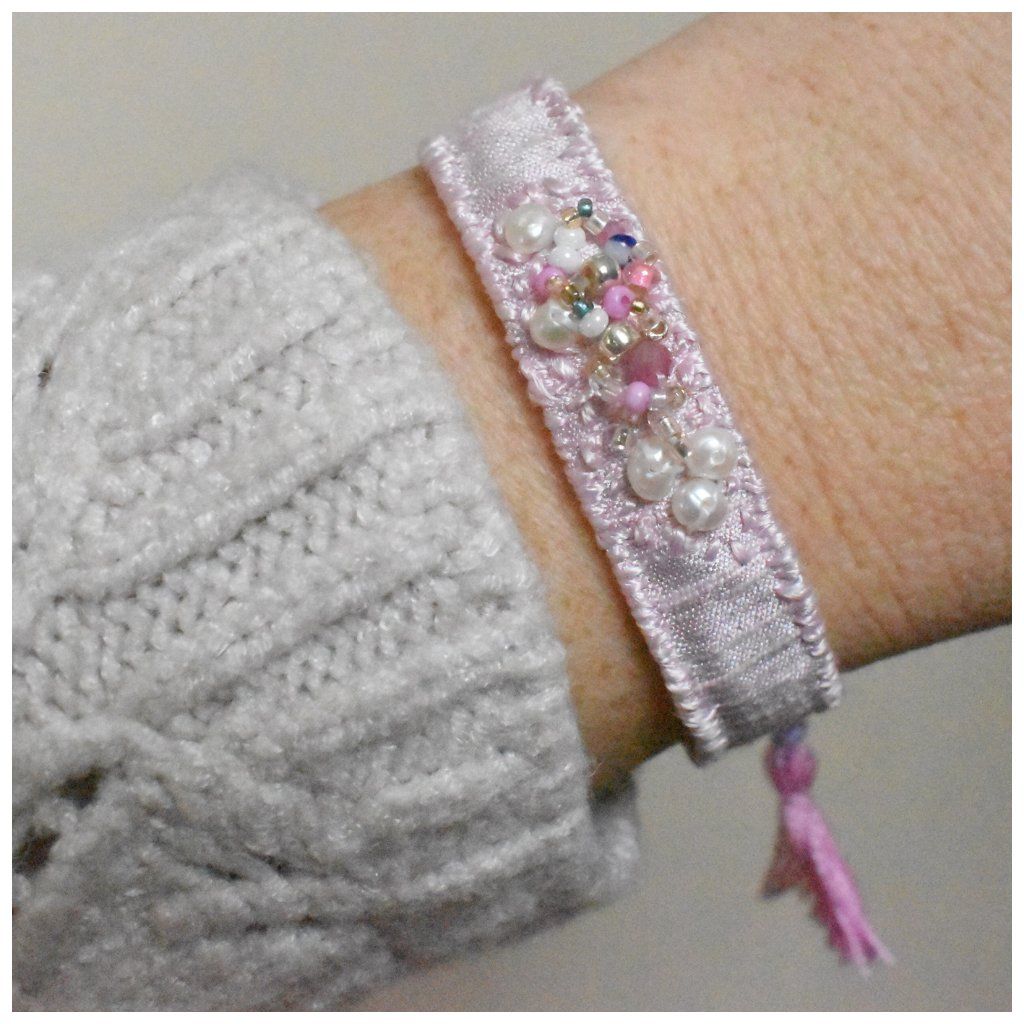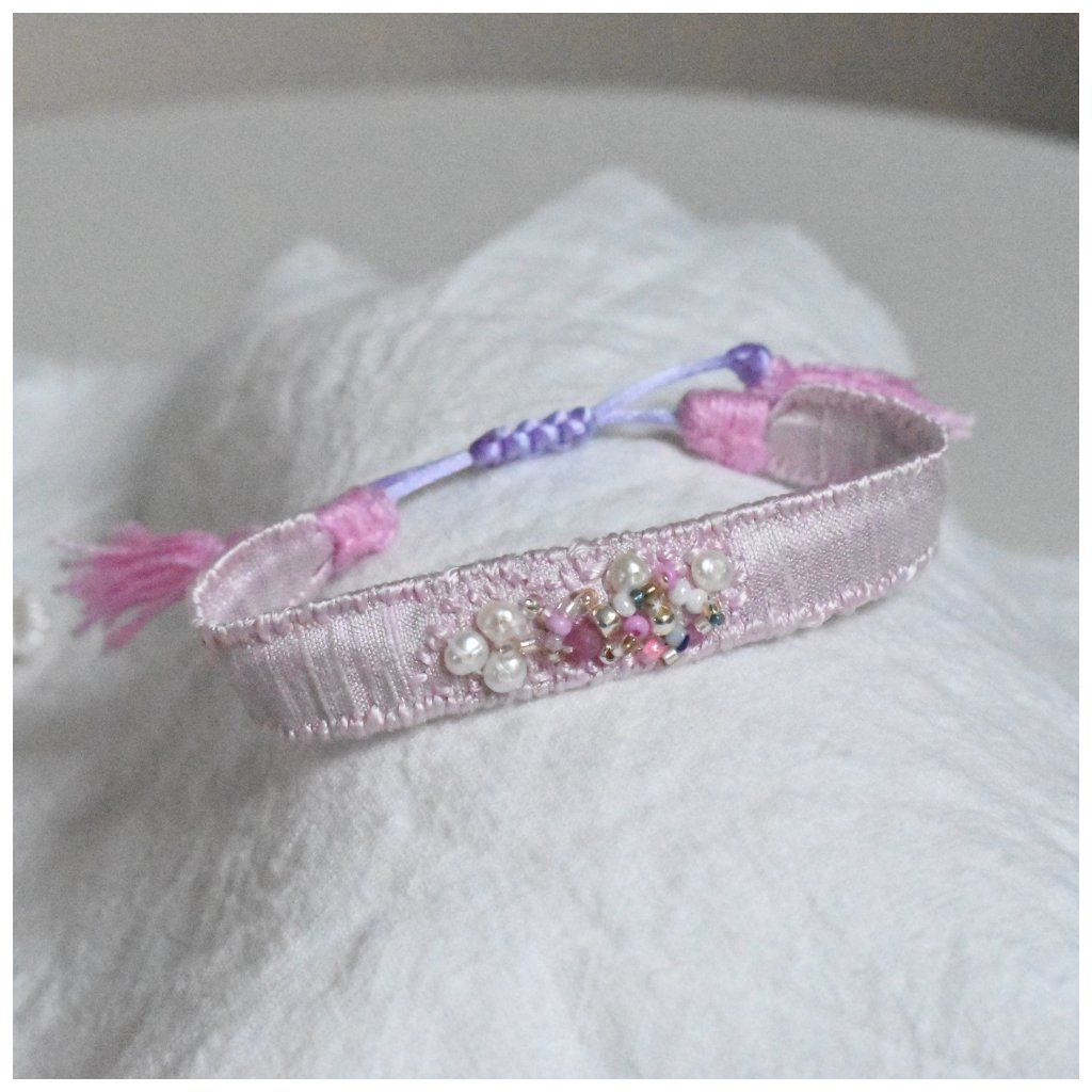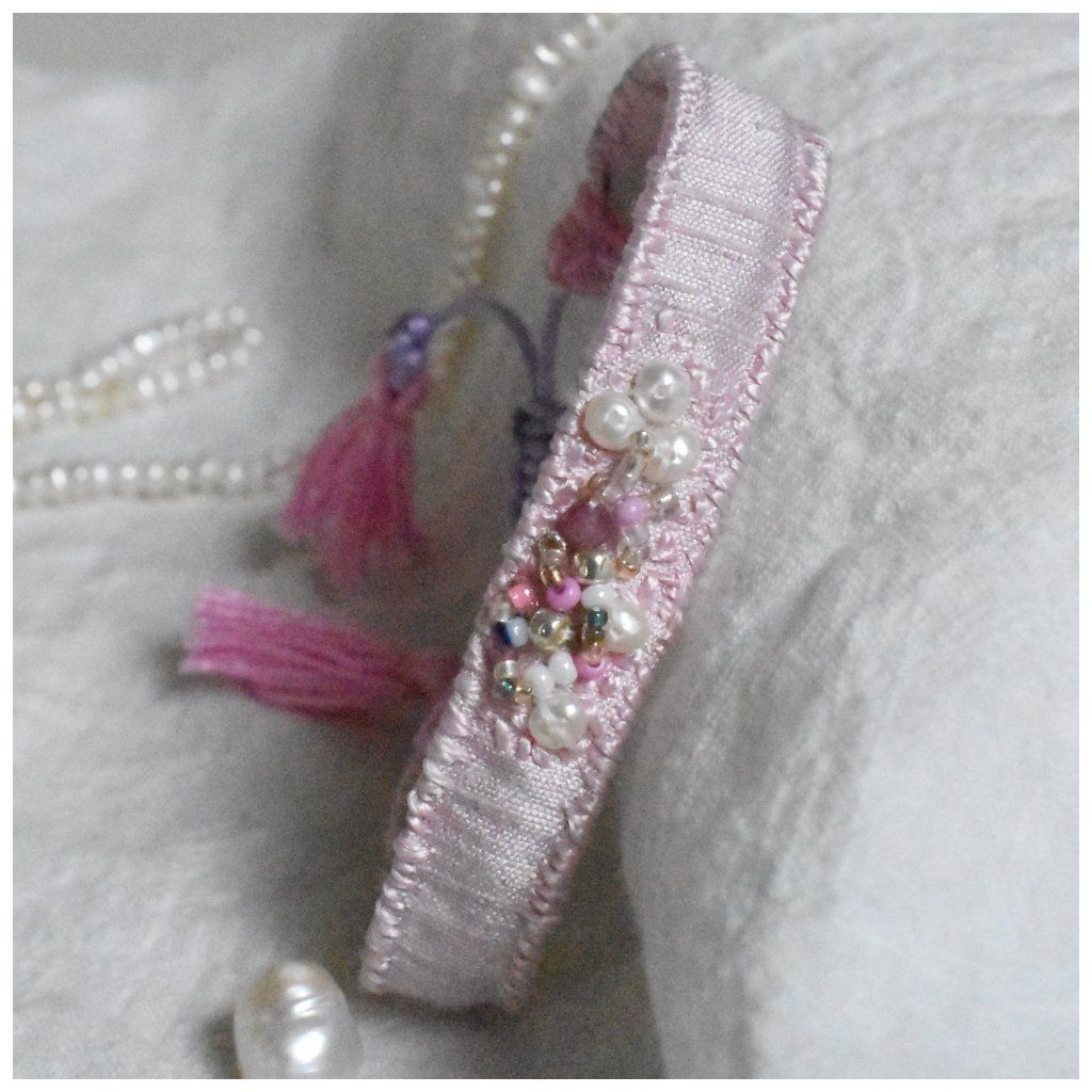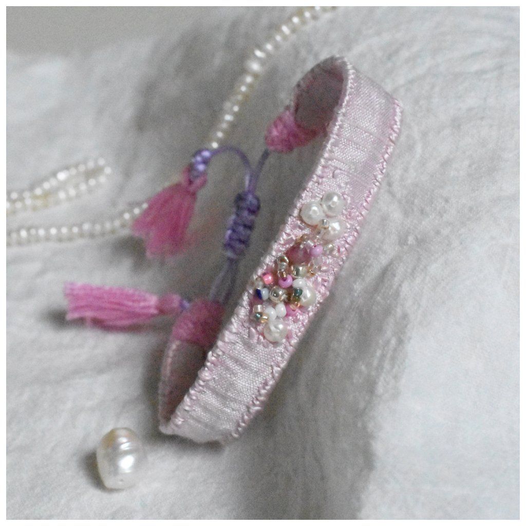 Limitovaná kolekce hedvábných vyšívaných náramků s perlami