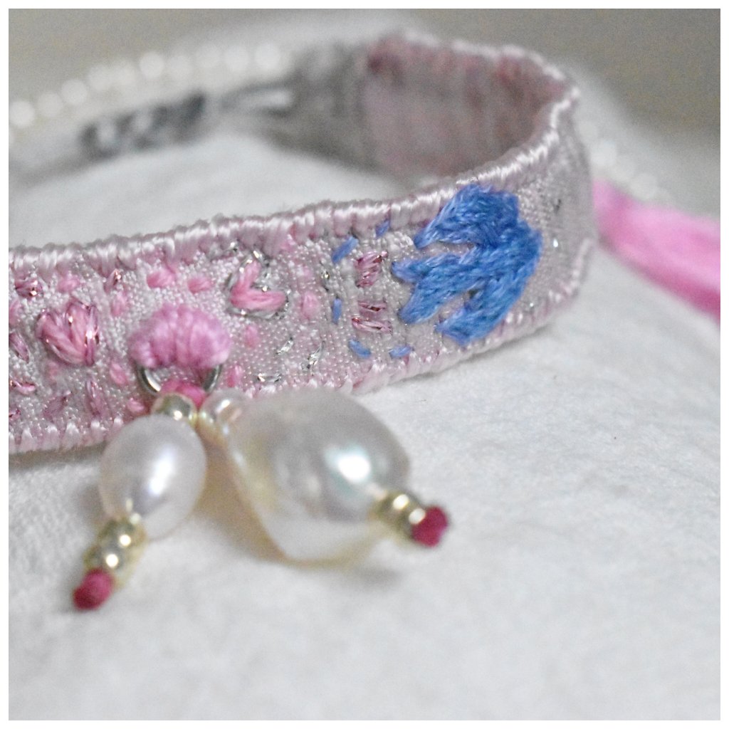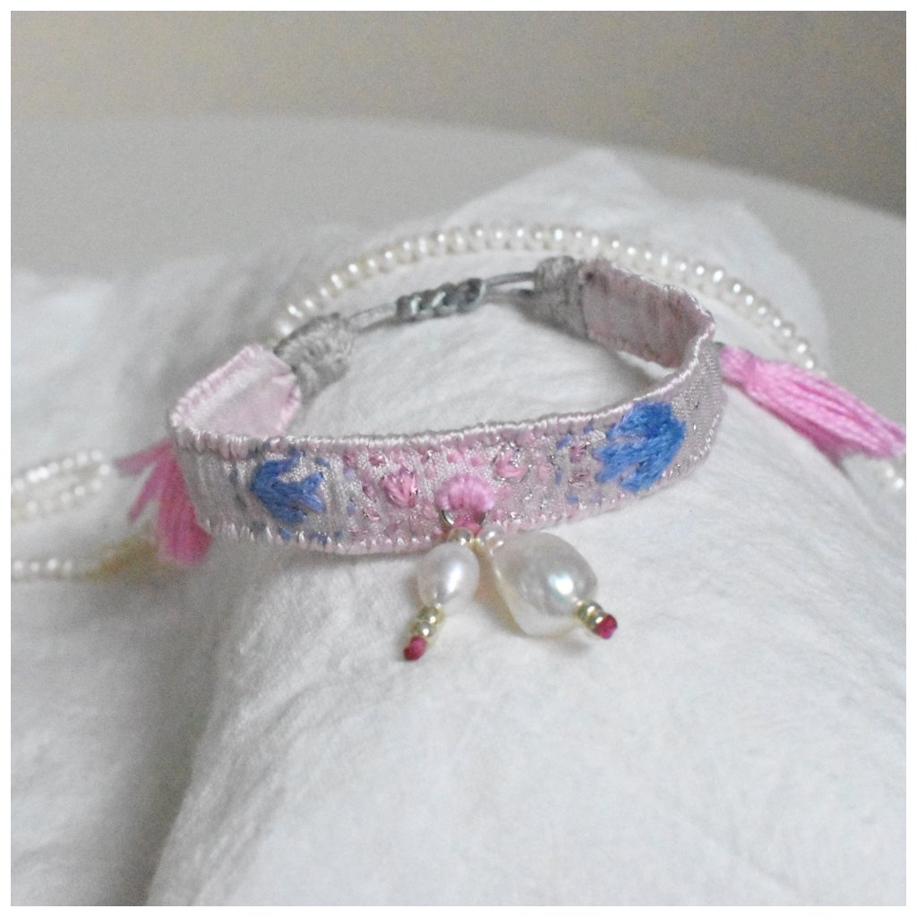 Limitovaná kolekce hedvábných vyšívaných náramků s perlami