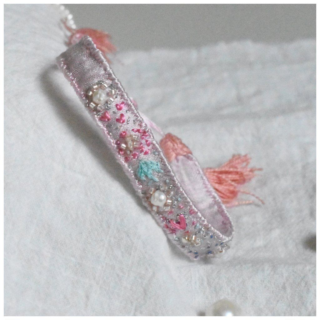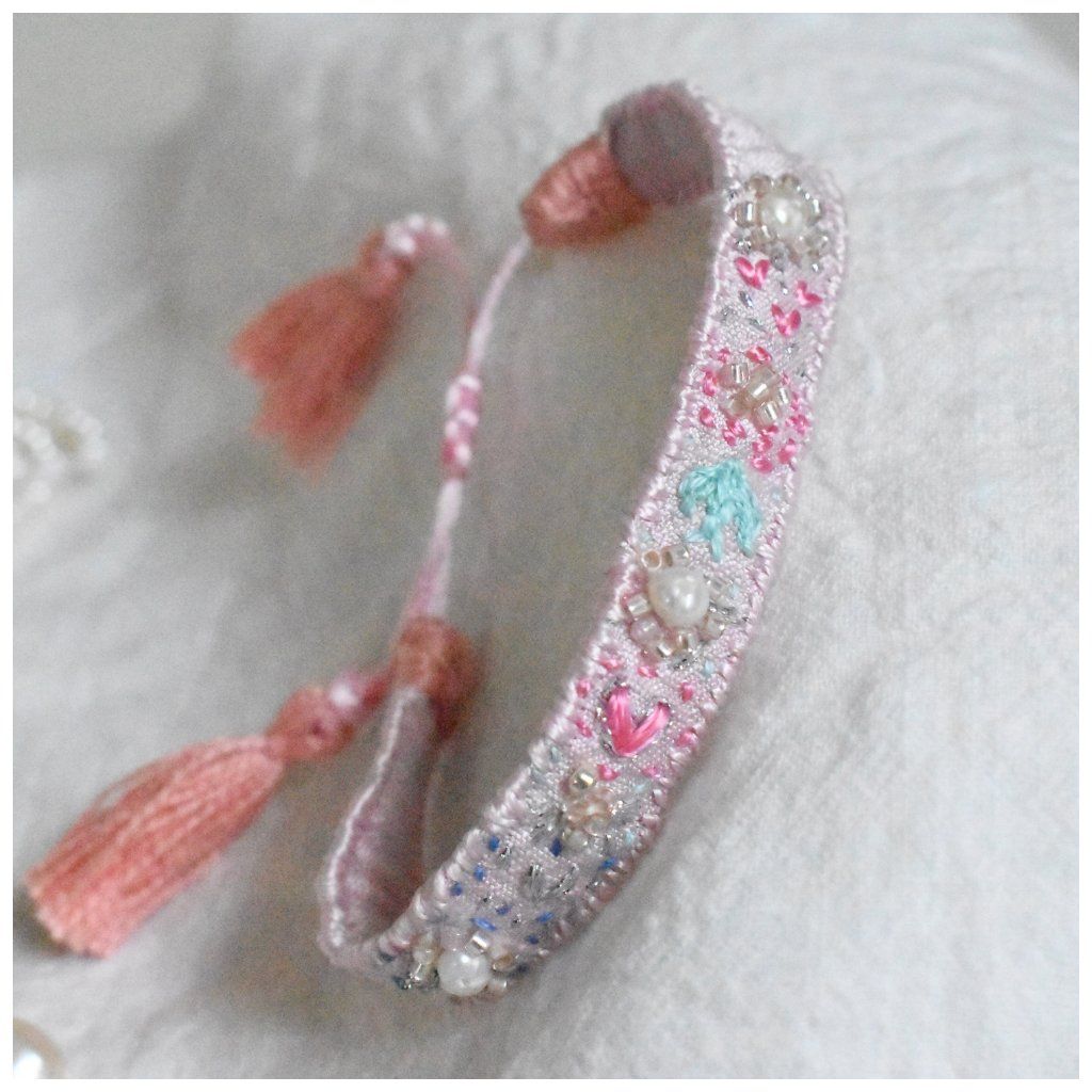 Limitovaná kolekce hedvábných vyšívaných náramků s perlami