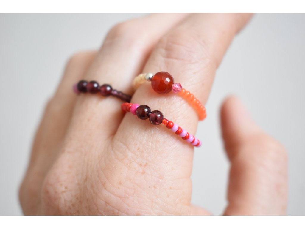 Hravý a originální korálkový prstýnek ze skla a minerálů.