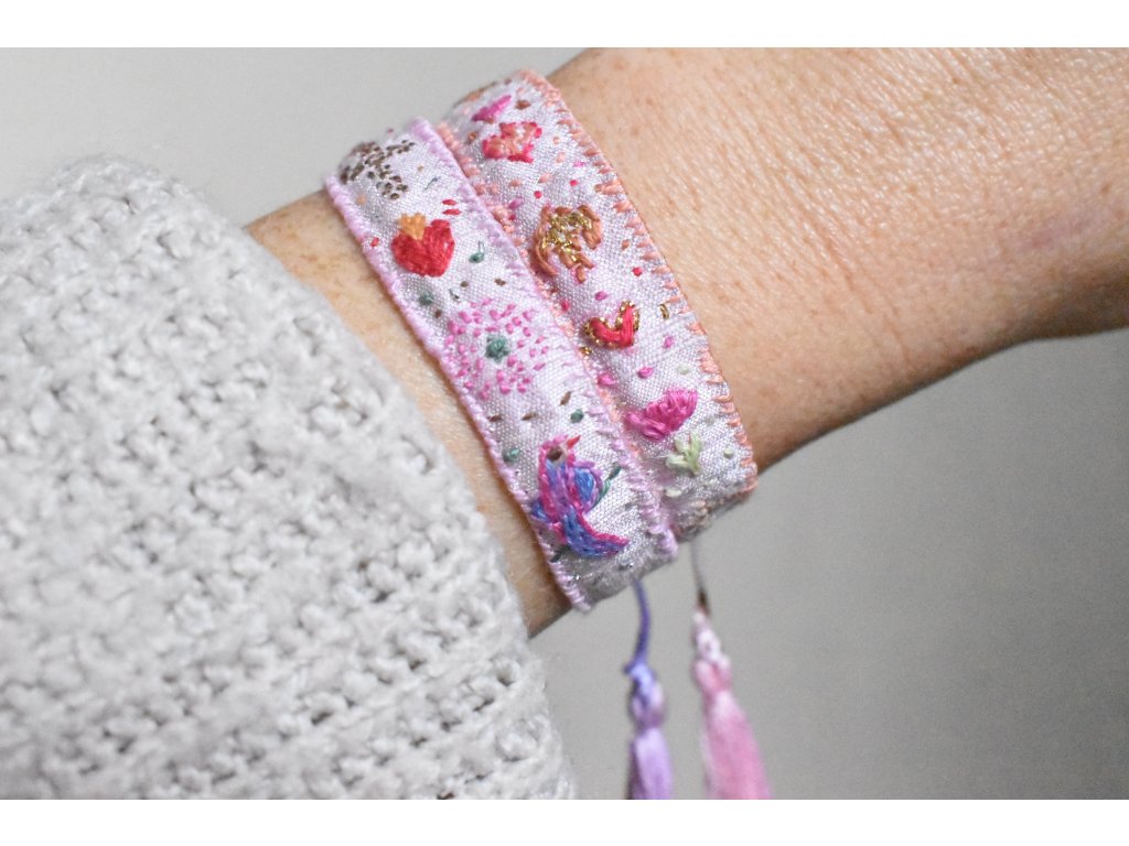 Vyšívaný hedvábný náramek #02