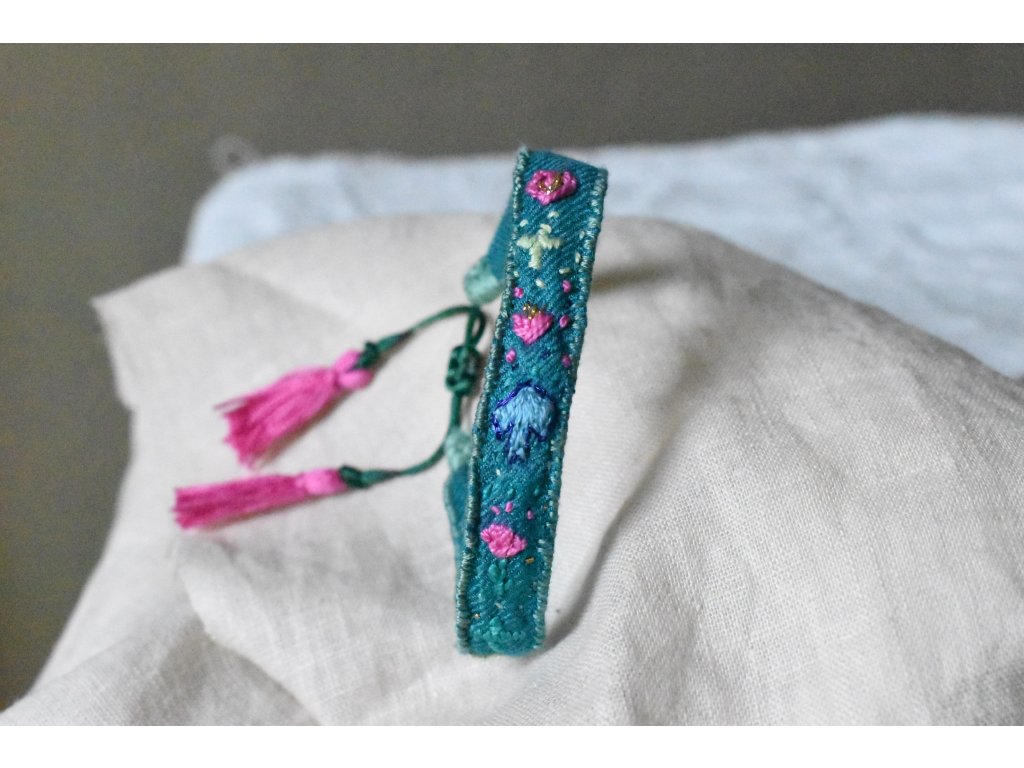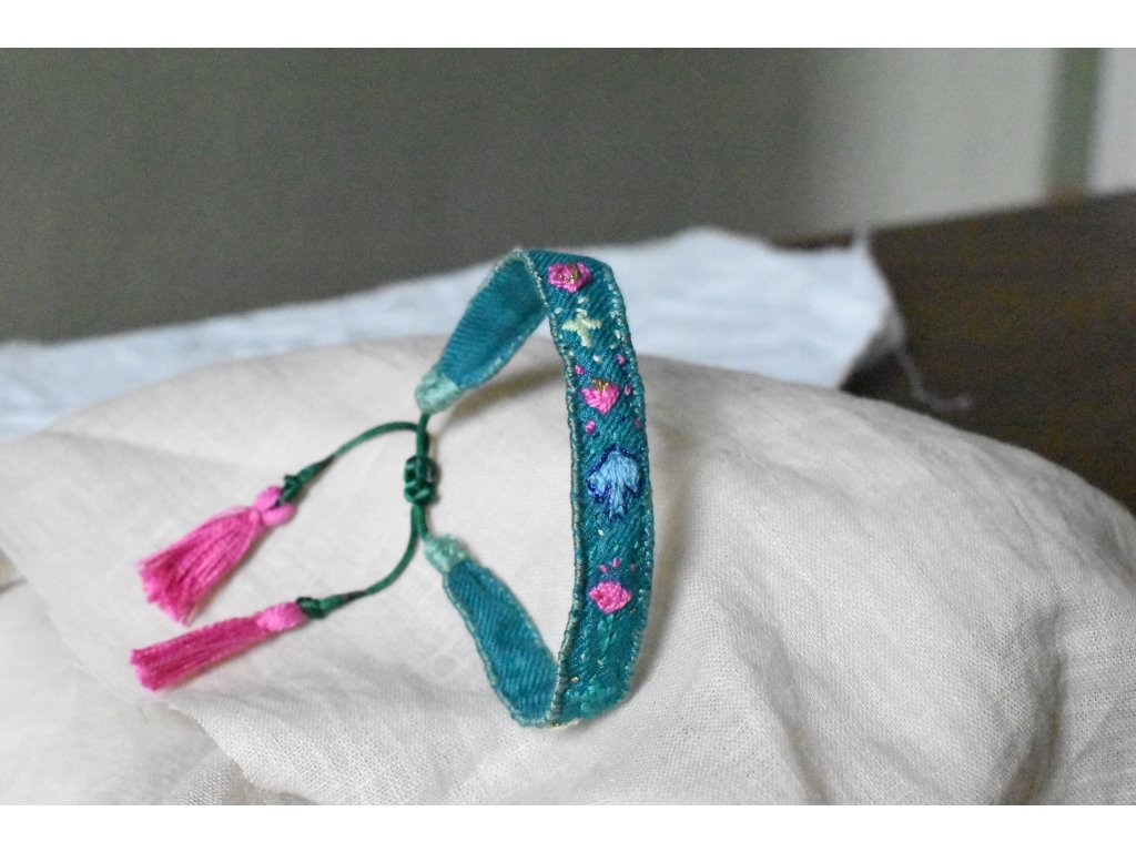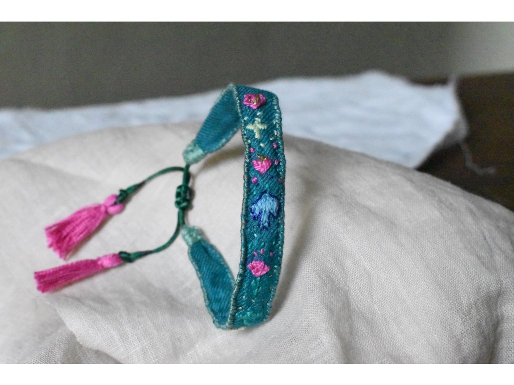 Vyšívaný hedvábný náramek #05