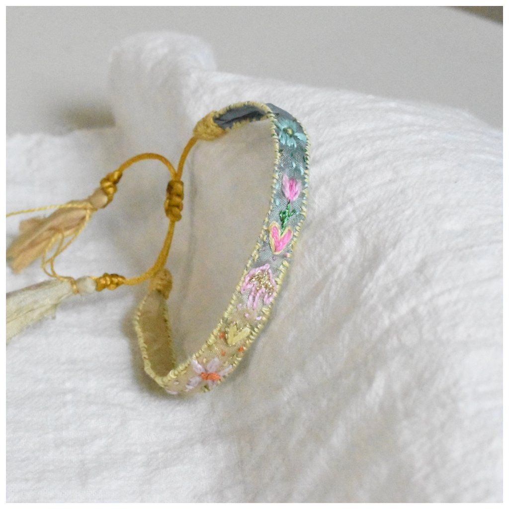 Vyšívaný hedvábný náramek Silk Stories TC01