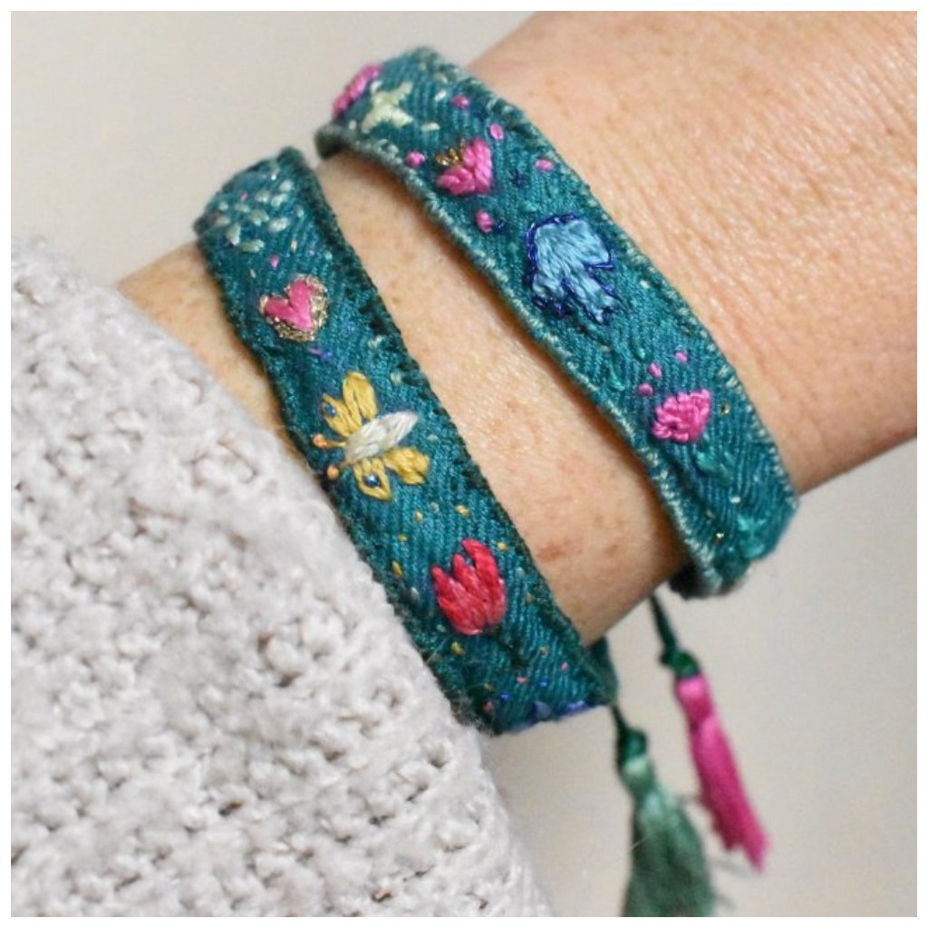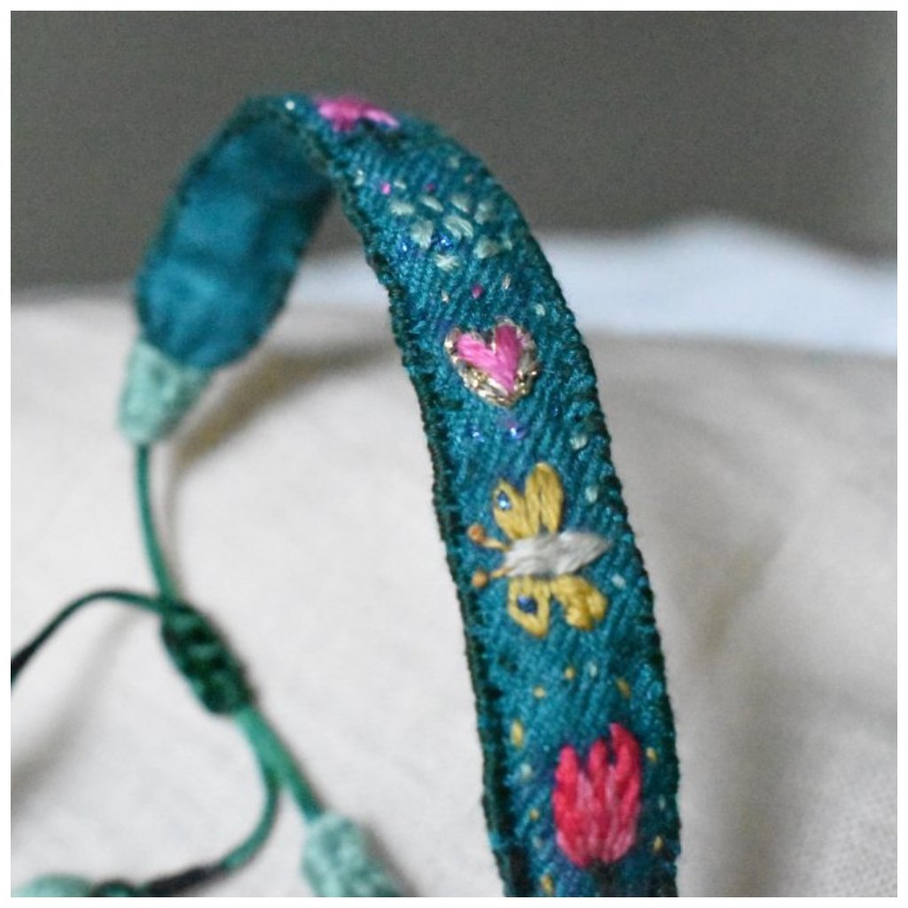 Vyšívaný hedvábný náramek Srdce zahrady