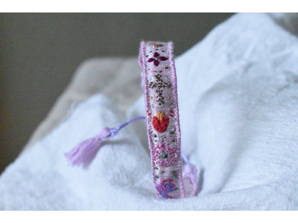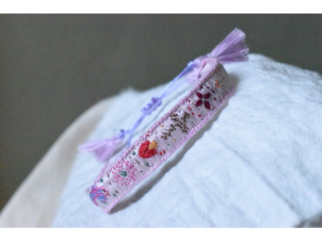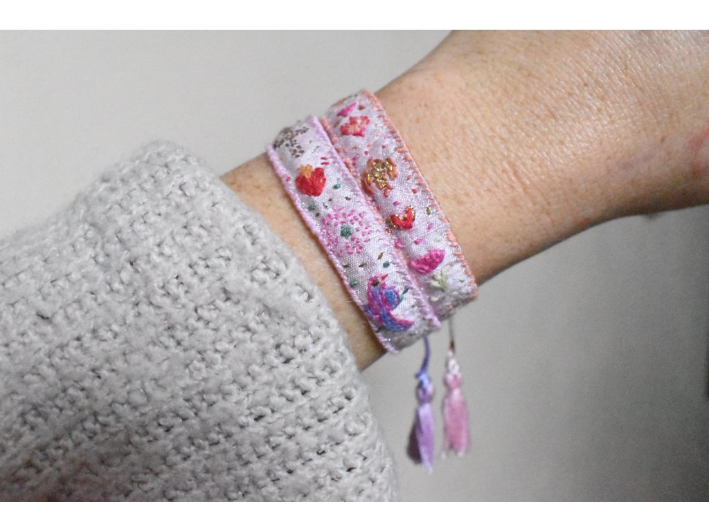 Vyšívaný hedvábný náramek #01