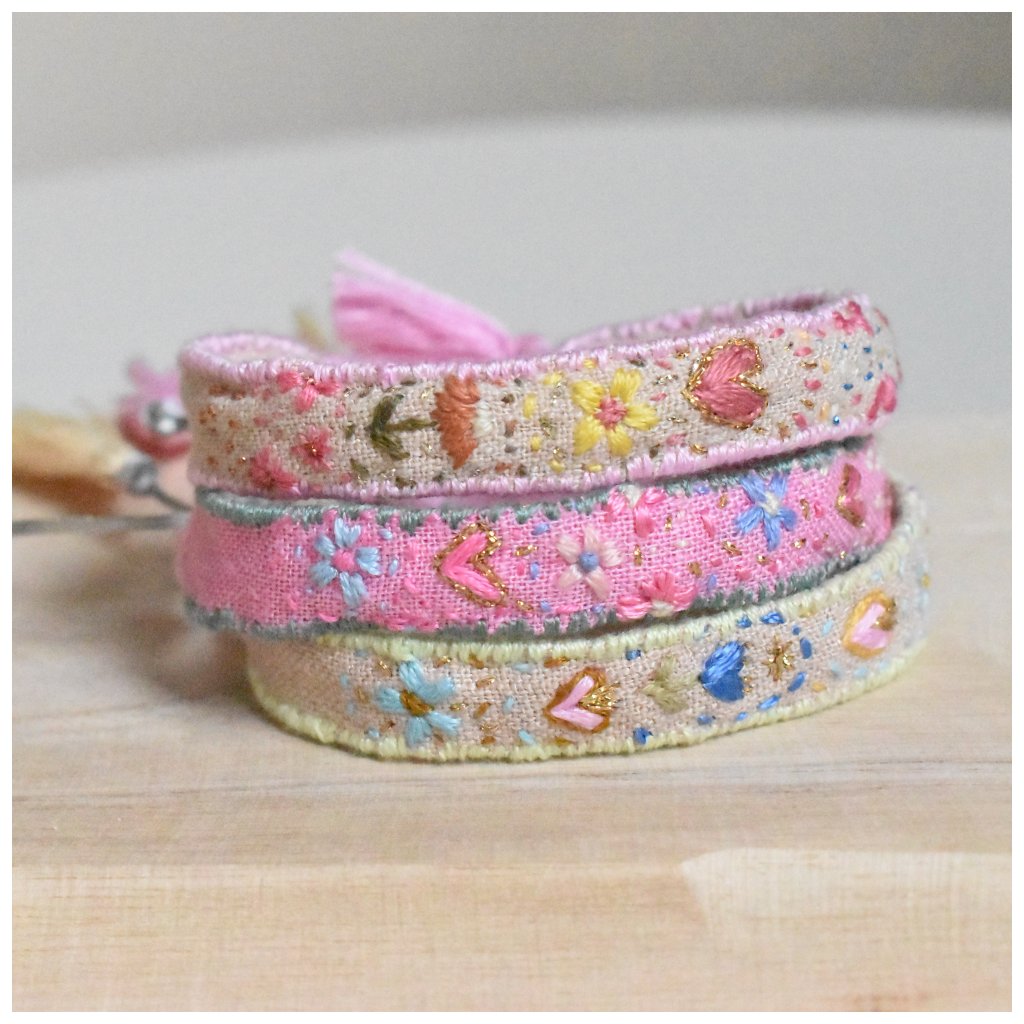 Vyšívaný lněný náramek Flores