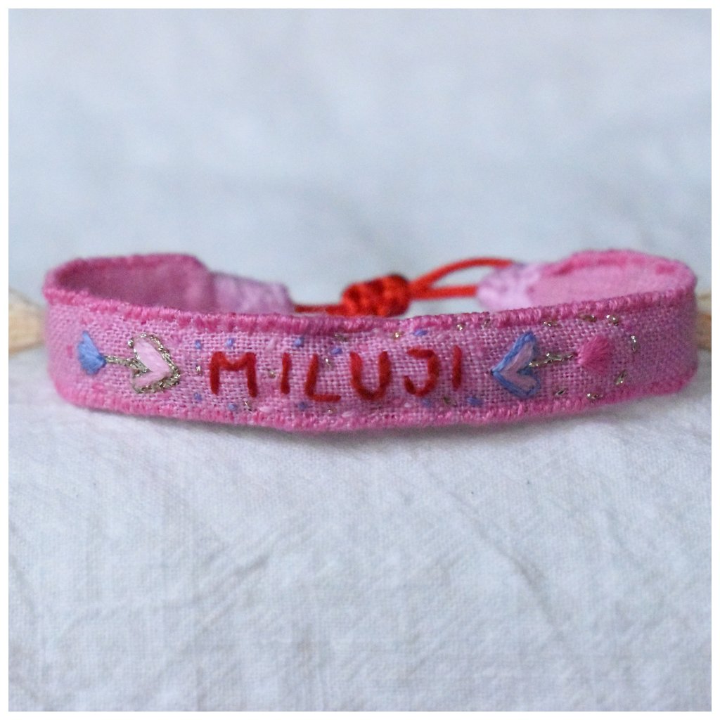 Vyšívaný náramek miluji pro všechny zamilované