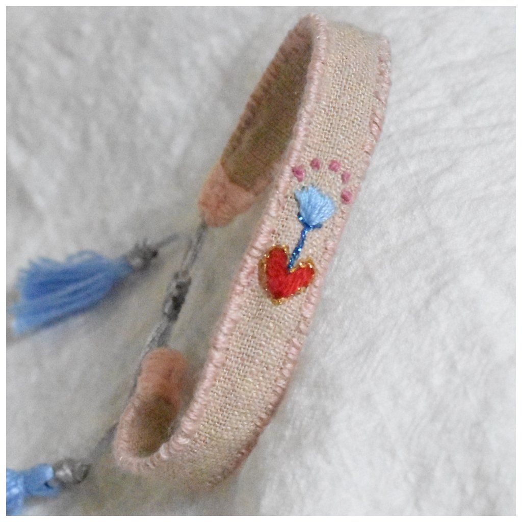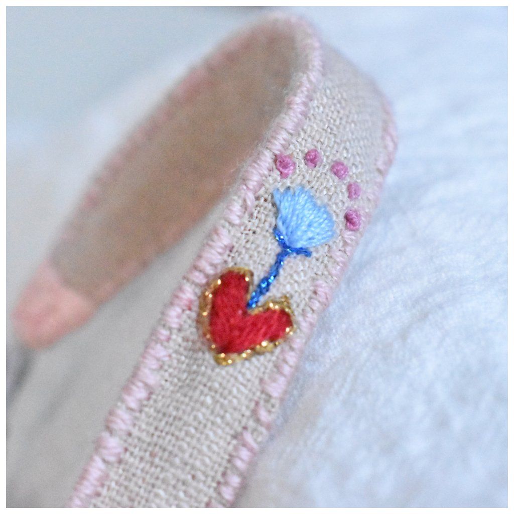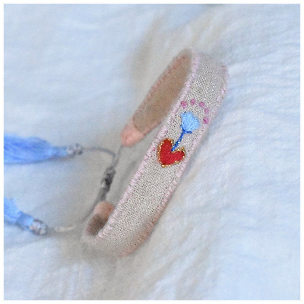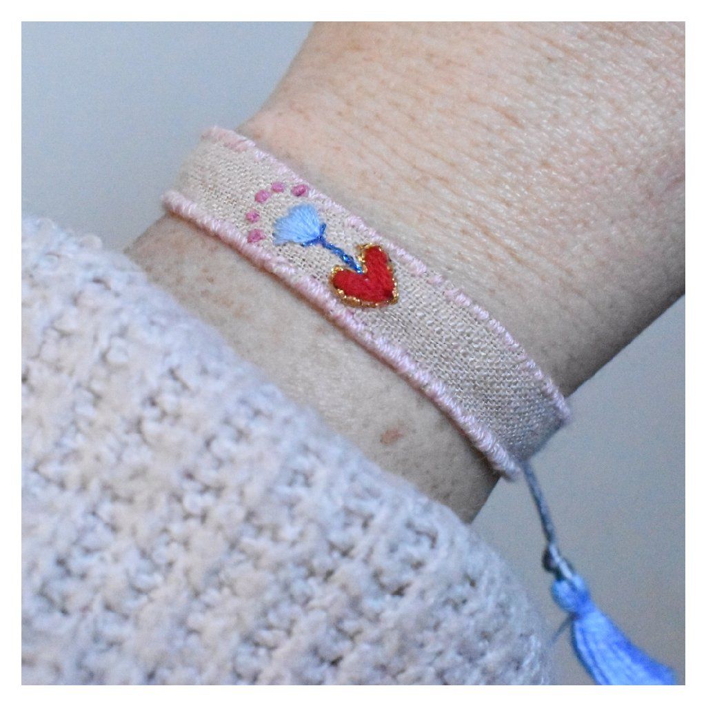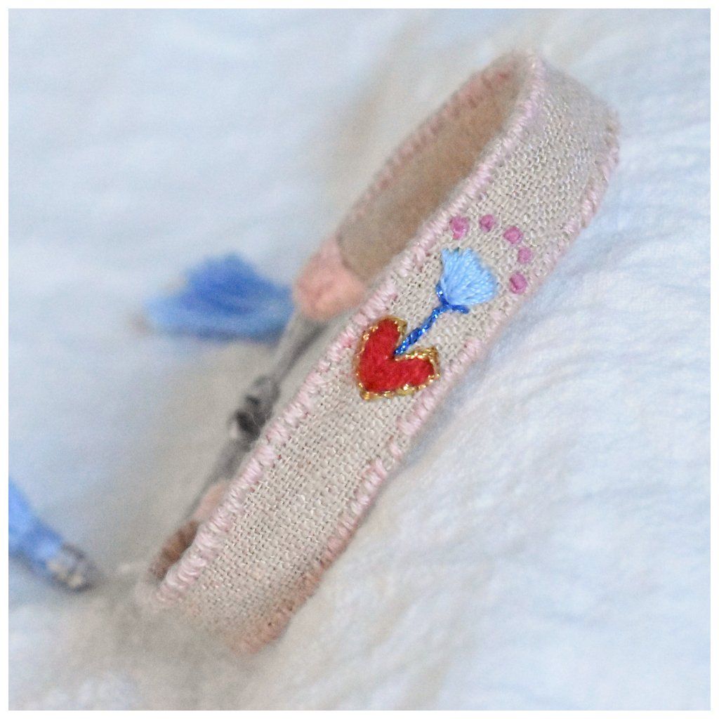 Vyšívaný lněný náramek SOLO Symboly - kvetoucí srdce