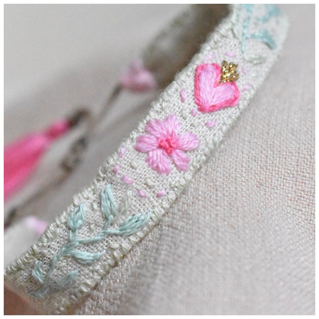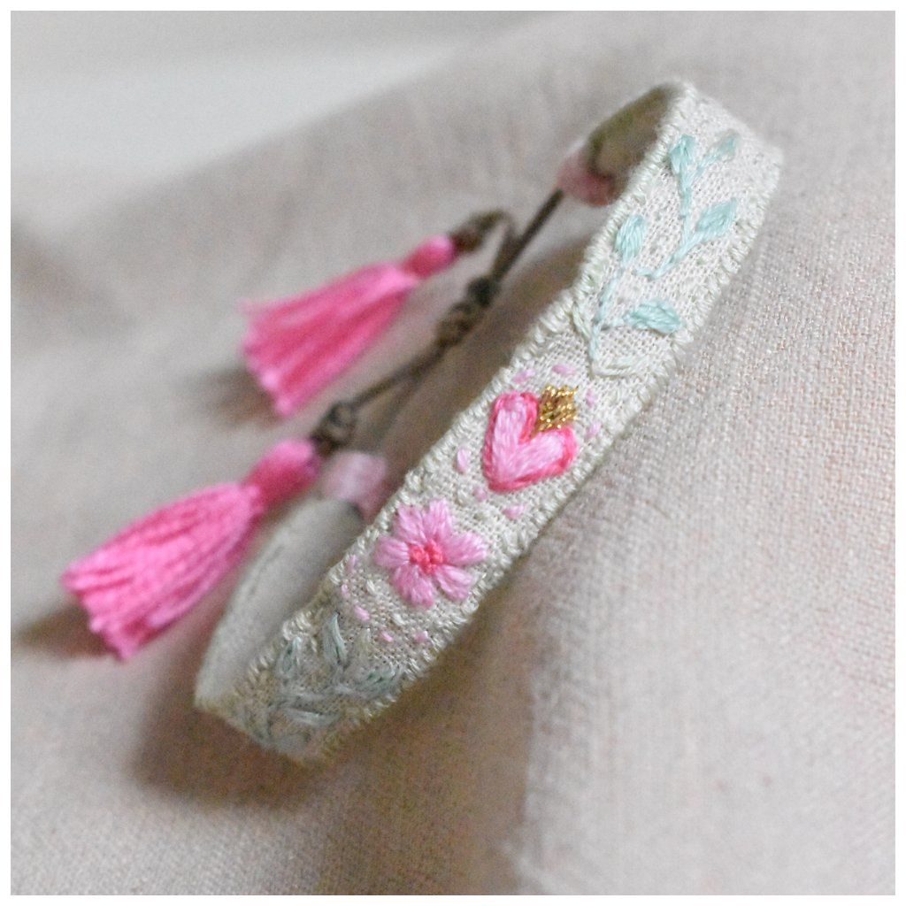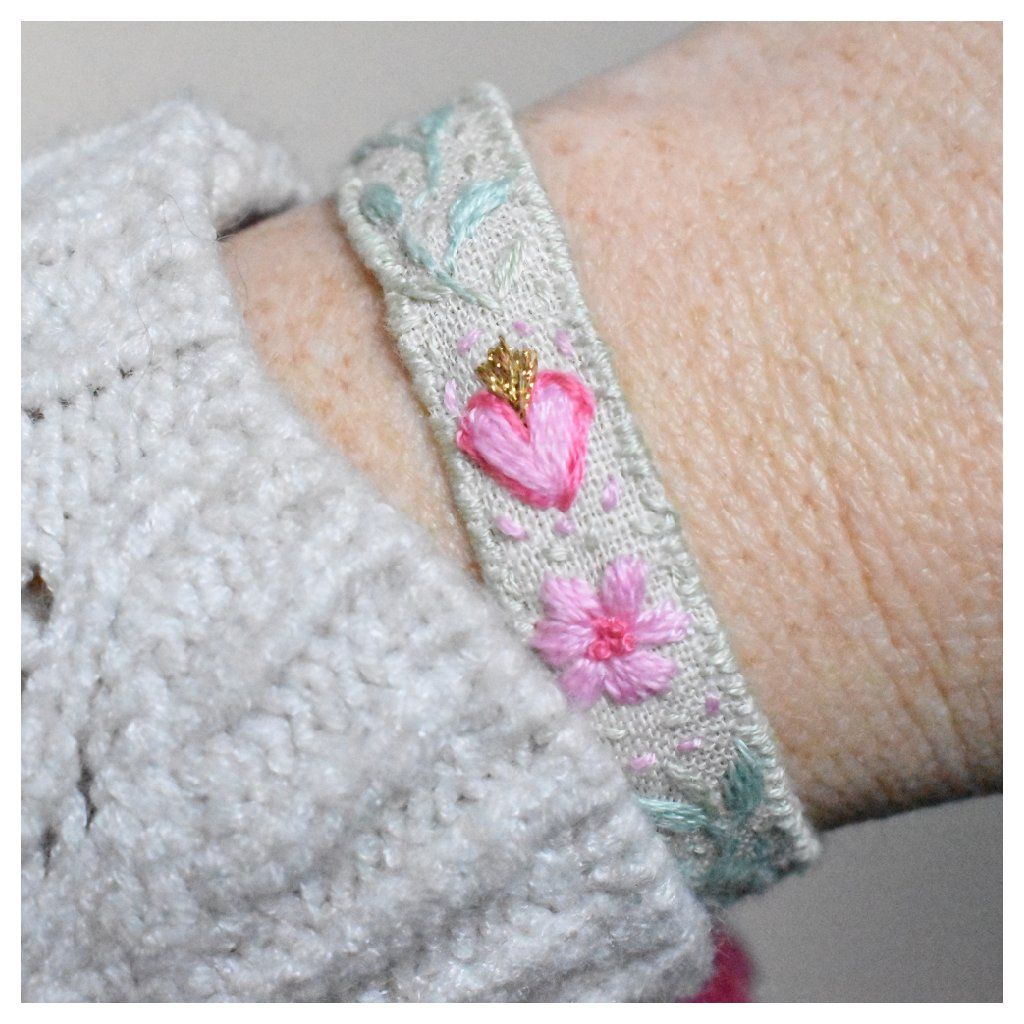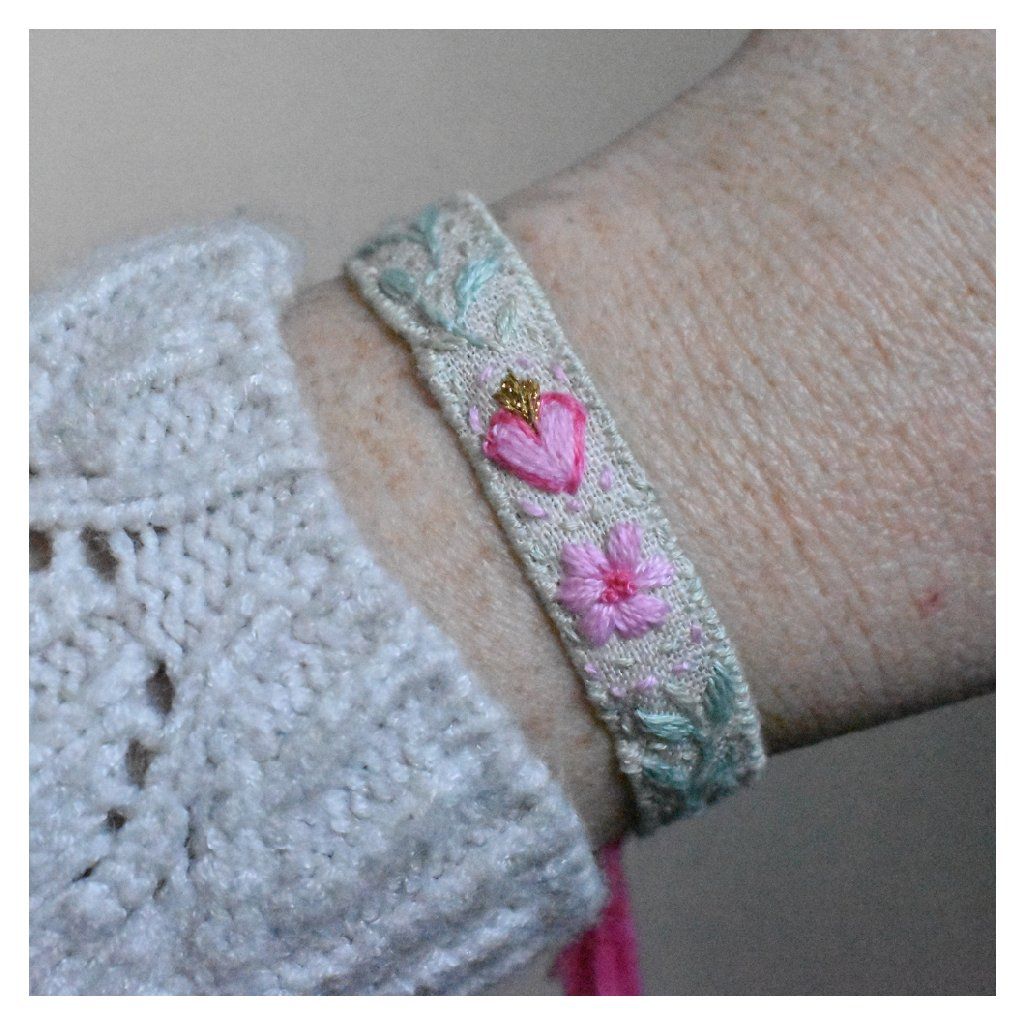 Vyšívaný lněný náramek Srdce zahrady
