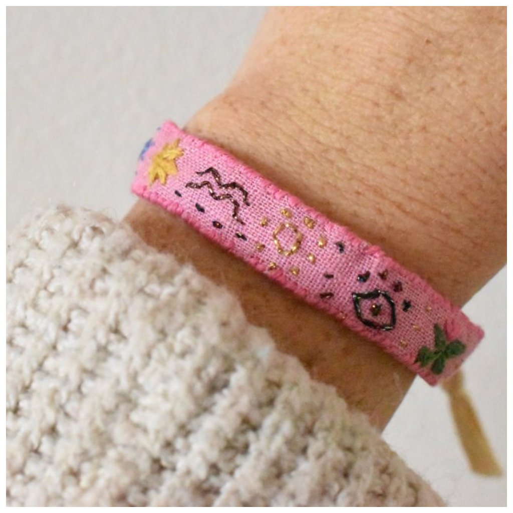 Vyšívaný lněný náramek symboly