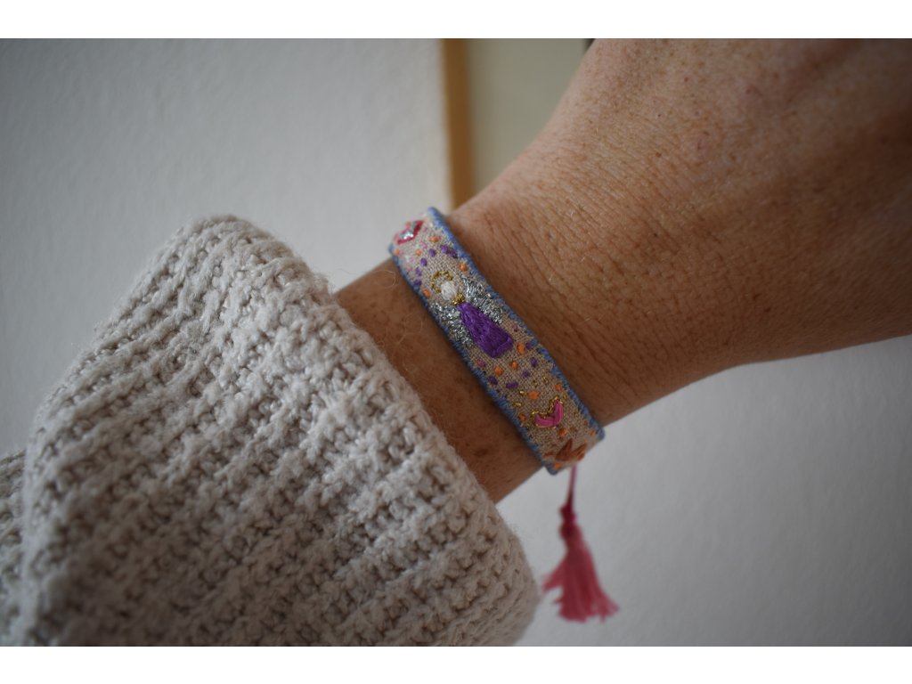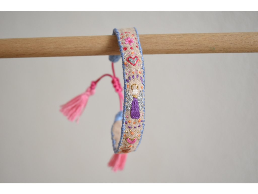 Vyšívaný náramek s andílkem strážným