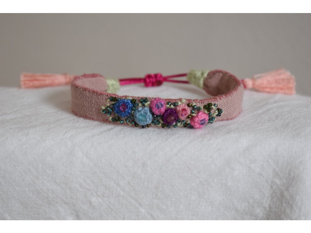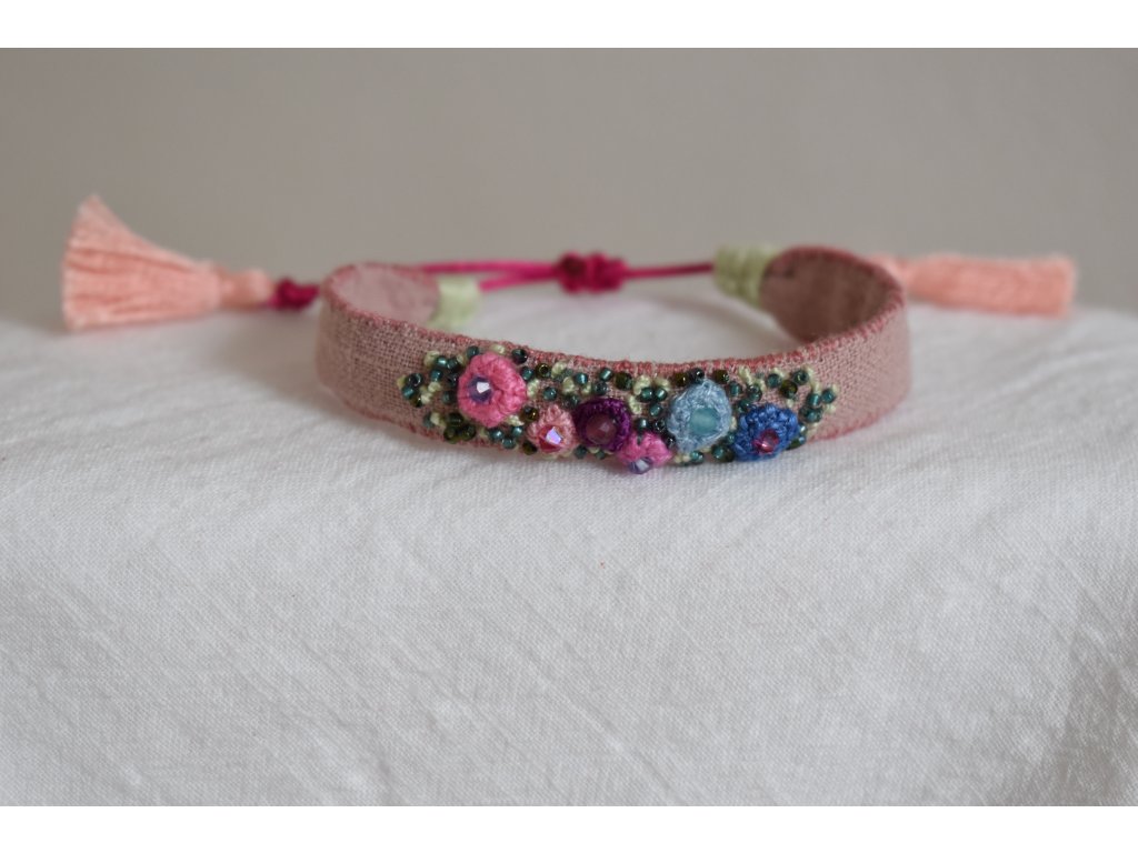 Zahrada - vyšívaný náramek s korálky - angelit, turmalín, swarowski